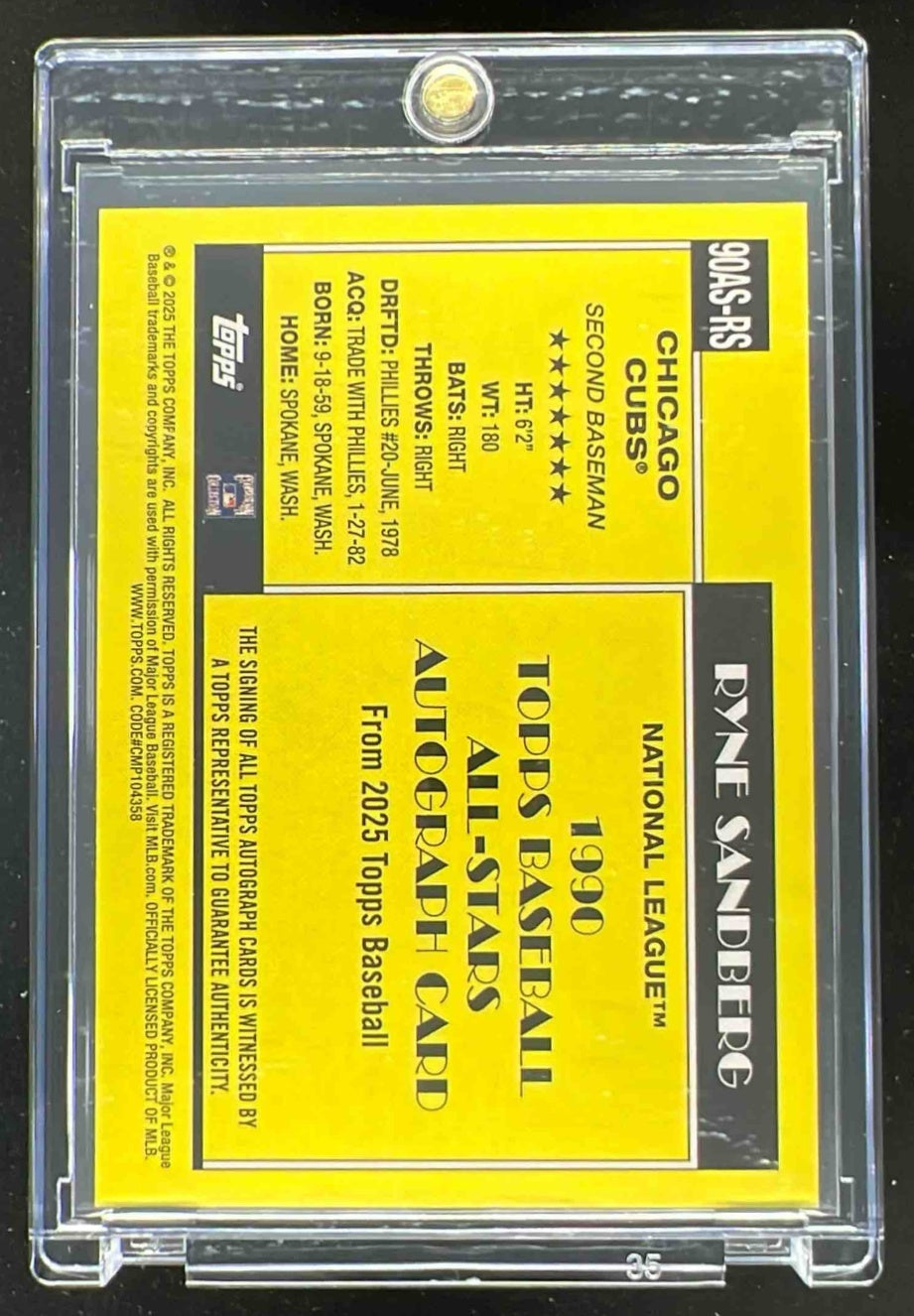 2025 Topps 1990 Baseball All-Star Autographs Red #90AS-RS Ryne Sandberg Auto /5