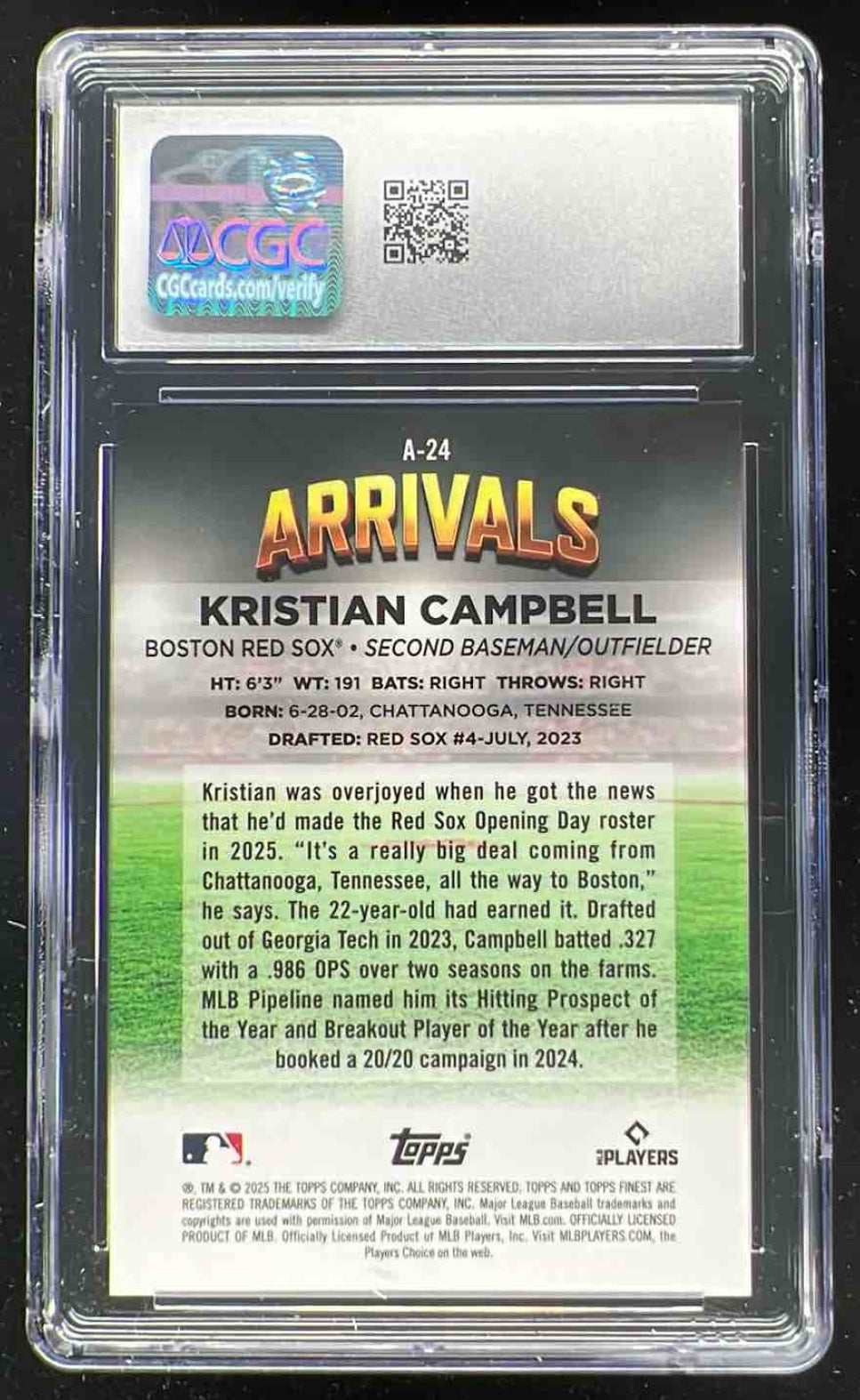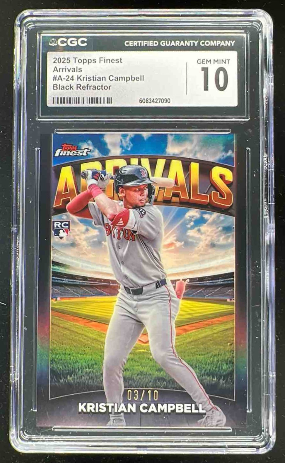 2025 Topps Finest Arrivals Black Refractor #A-24 Kristian Campbell RC /10 CGC 10