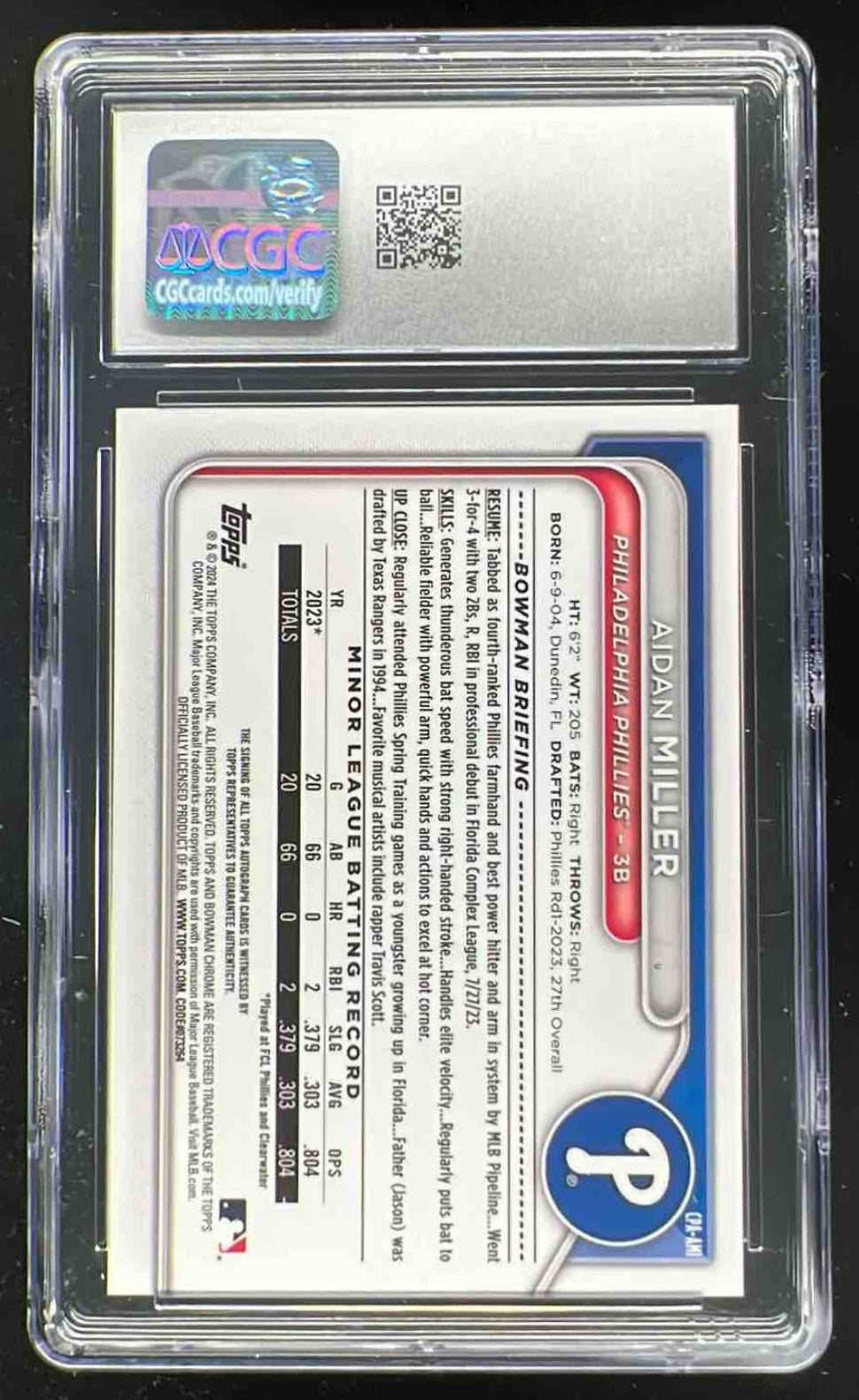 2024 Bowman Chrome Autographs #CPA-AMI Aidan Miller RC Auto CGC 10
