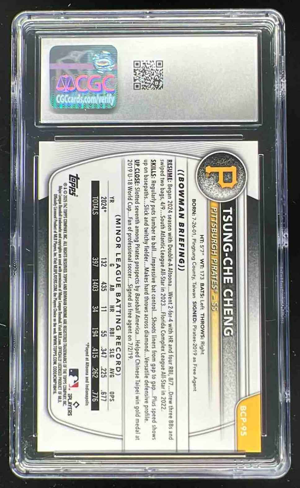 2025 Bowman Sapphire Chrome Orange Refractors Tsung-Che Cheng RC /25 CGC 10