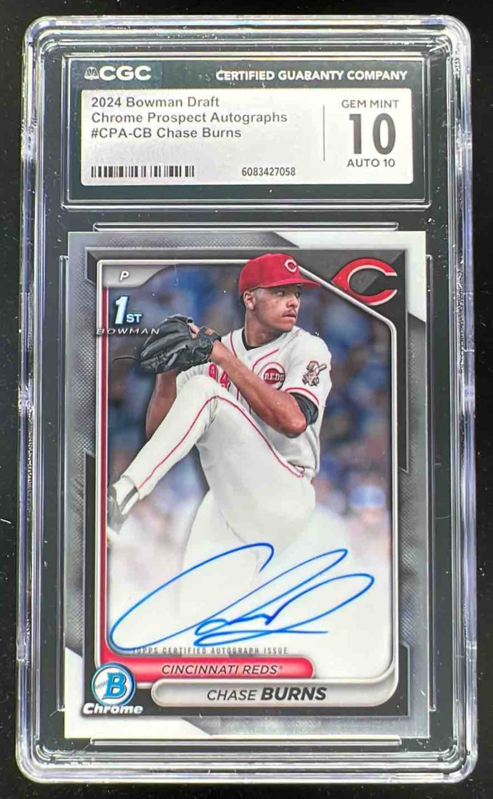 2024 Bowman Draft Chrome Autographs #CPA-CB Chase Burns RC Auto CGC 10