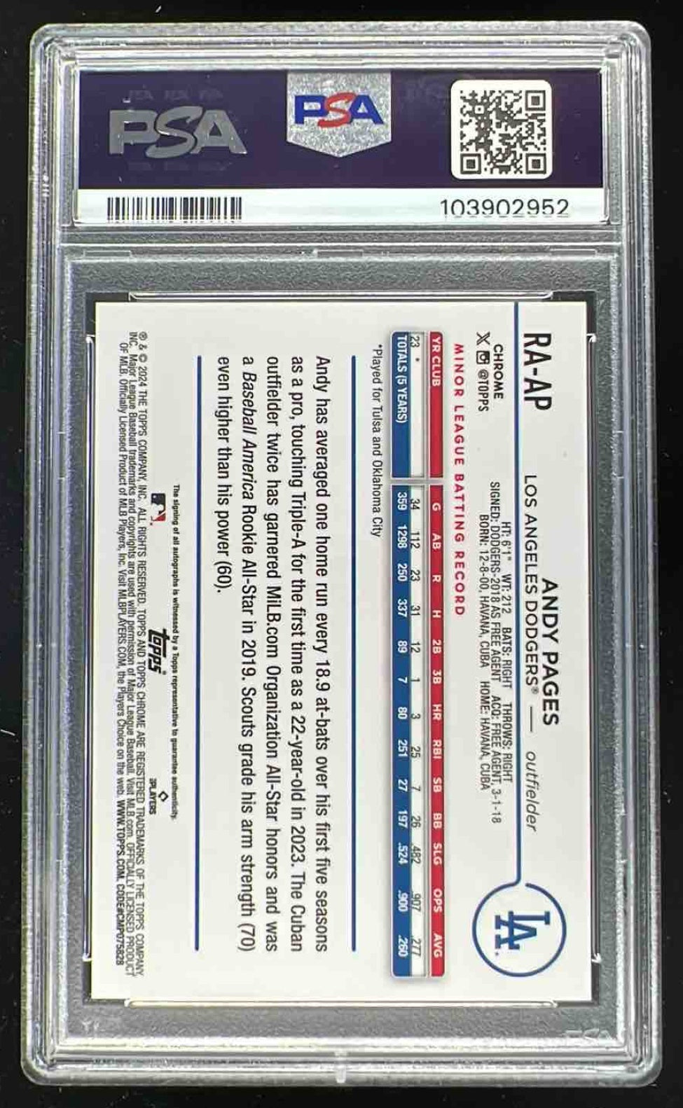 2024 Topps Chrome Update Gold Refractor #RA-AP Andy Pages RC Auto /50 PSA 6