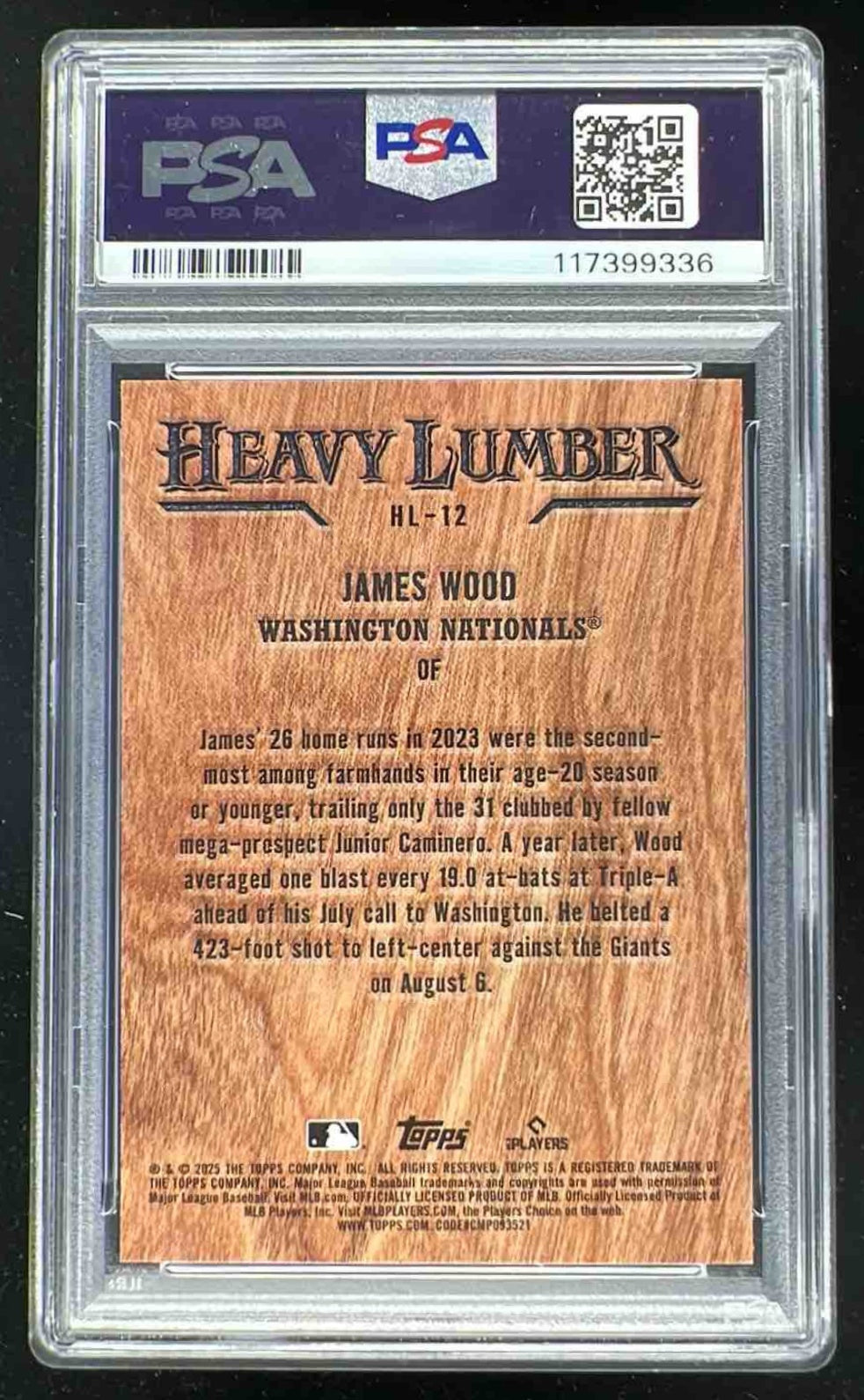 2025 Topps Heavy Lumber #HL-12 James Wood RC PSA 9