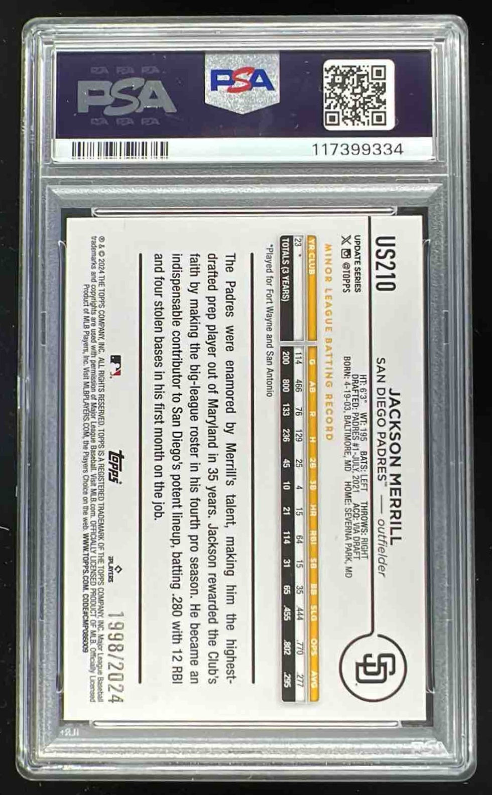 2024 Topps Update Gold #US210 Jackson Merrill RC /2024 PSA 9