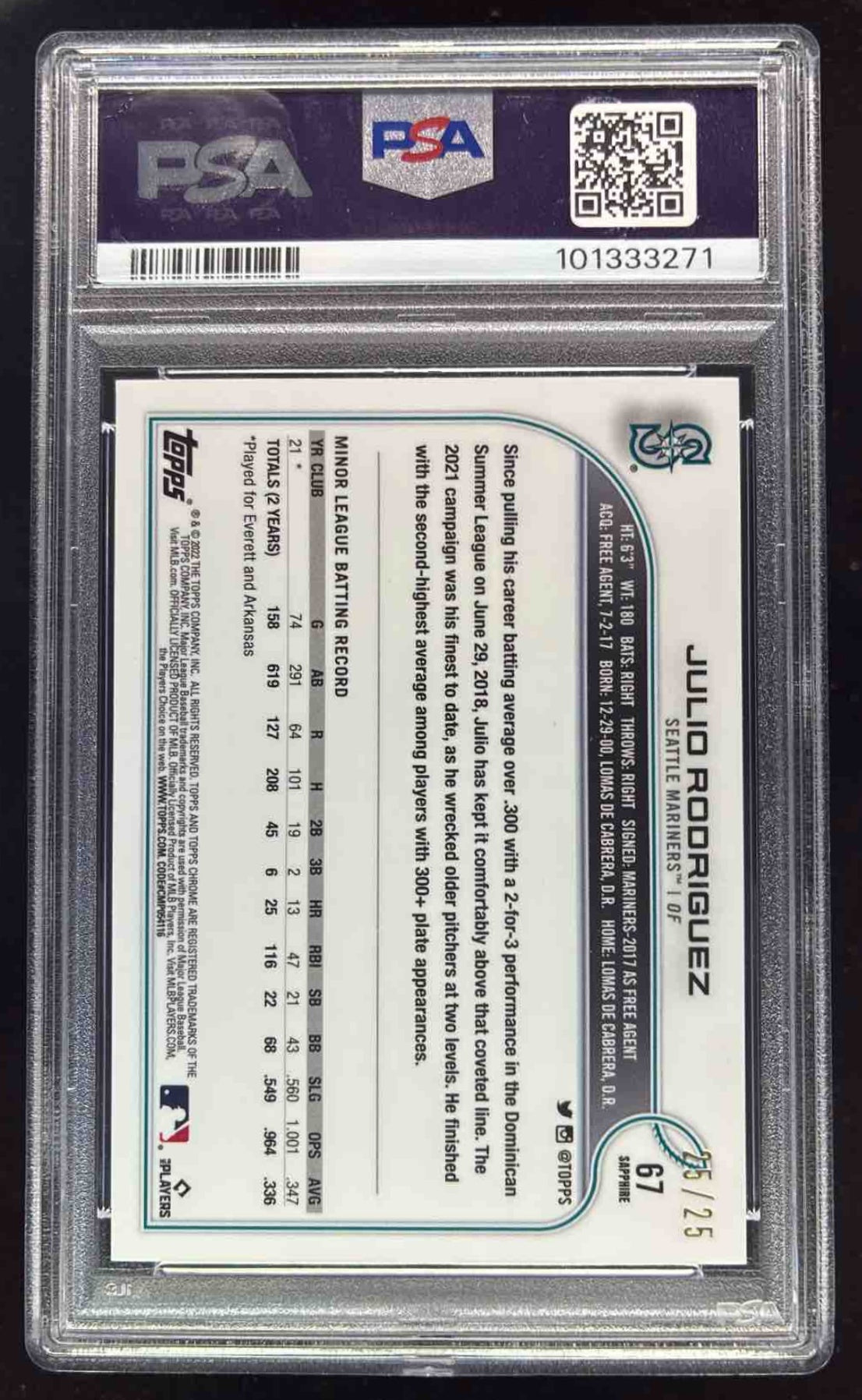 2022 Topps Chrome Sapphire Chrome Orange #67 Julio Rodriguez RC /25 PSA 10