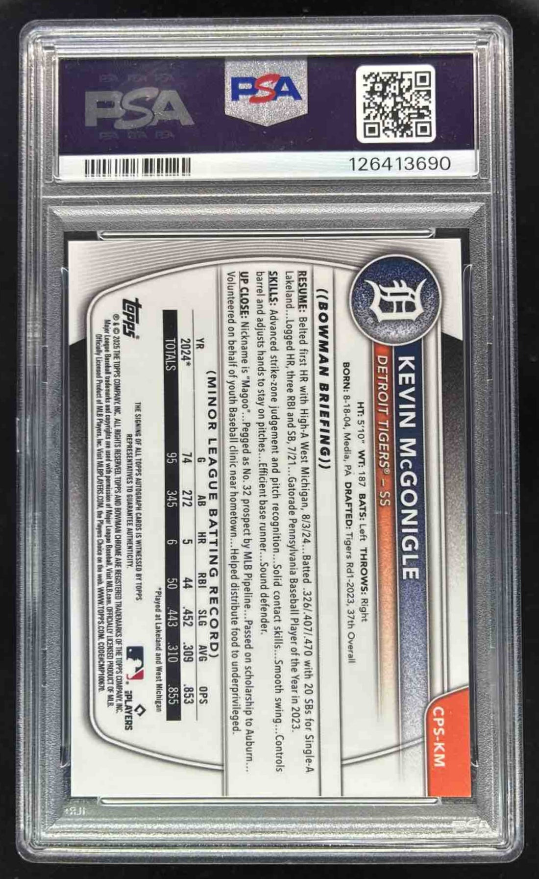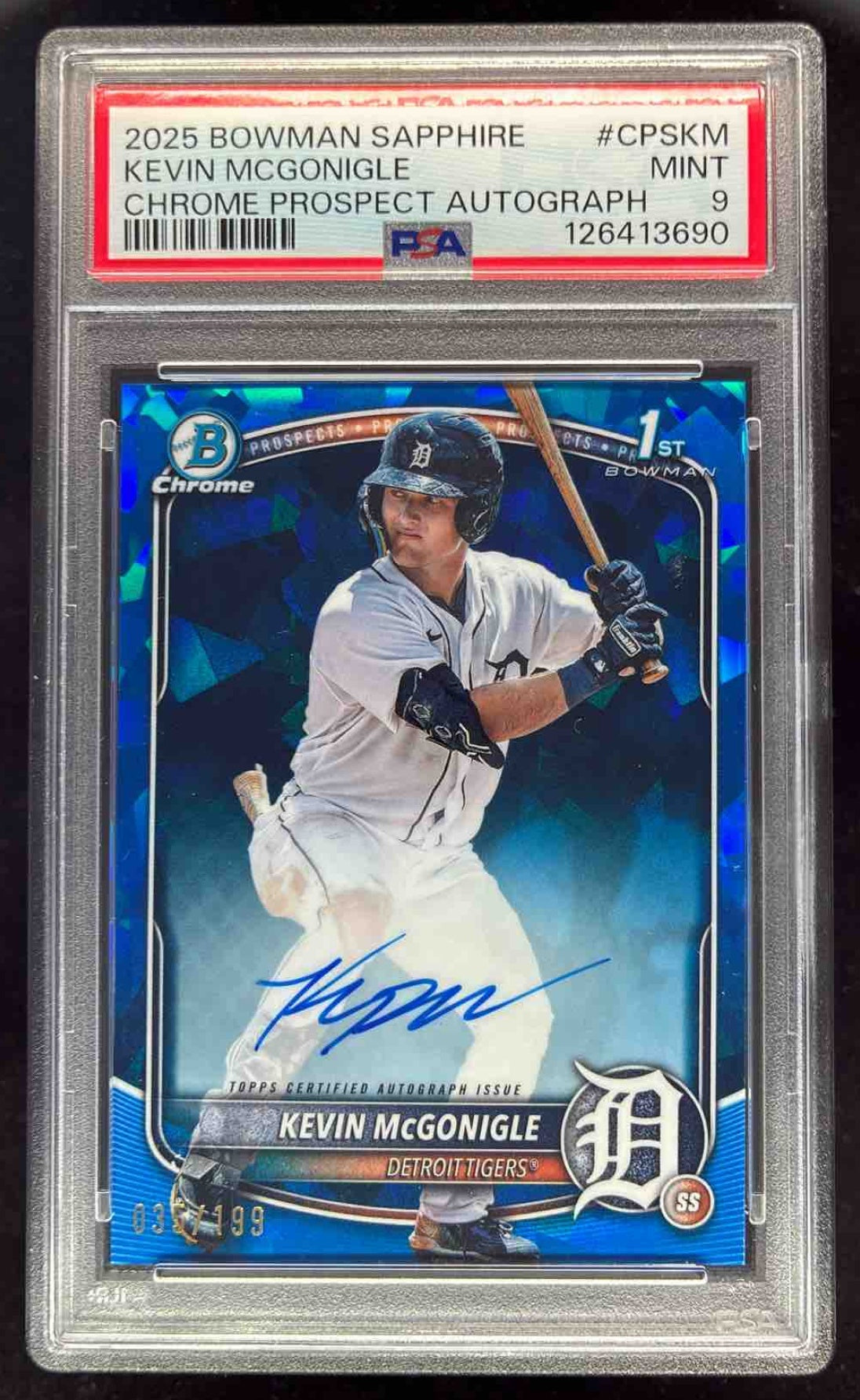 2025 Bowman Sapphire Chrome Autograph #CPS-KM Kevin McGonigle RC Auto /199 PSA 9