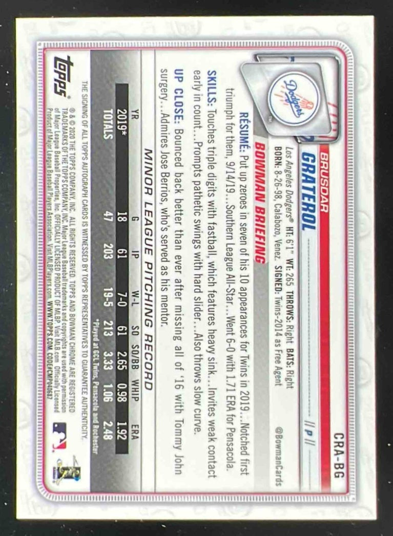 2020 Bowman Chrome Rookie Gold Refractor Brusdar Graterol RC Auto /50