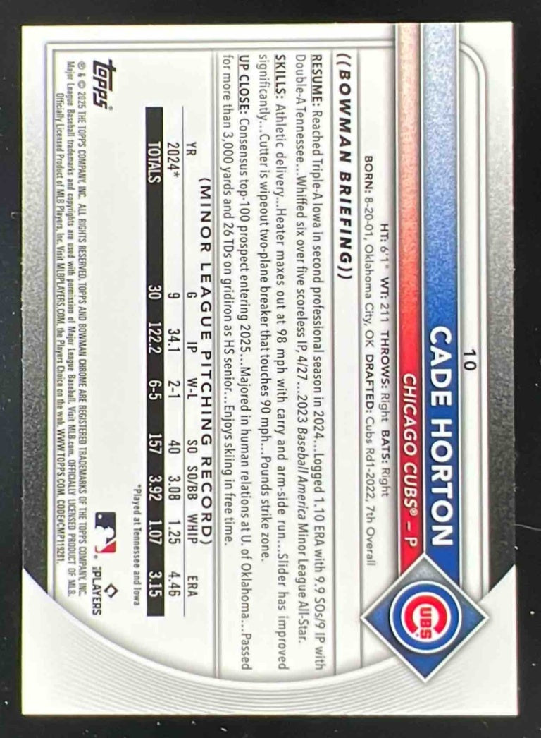 2025 Bowman Chrome Red RC Variation #10 Cade Horton RC