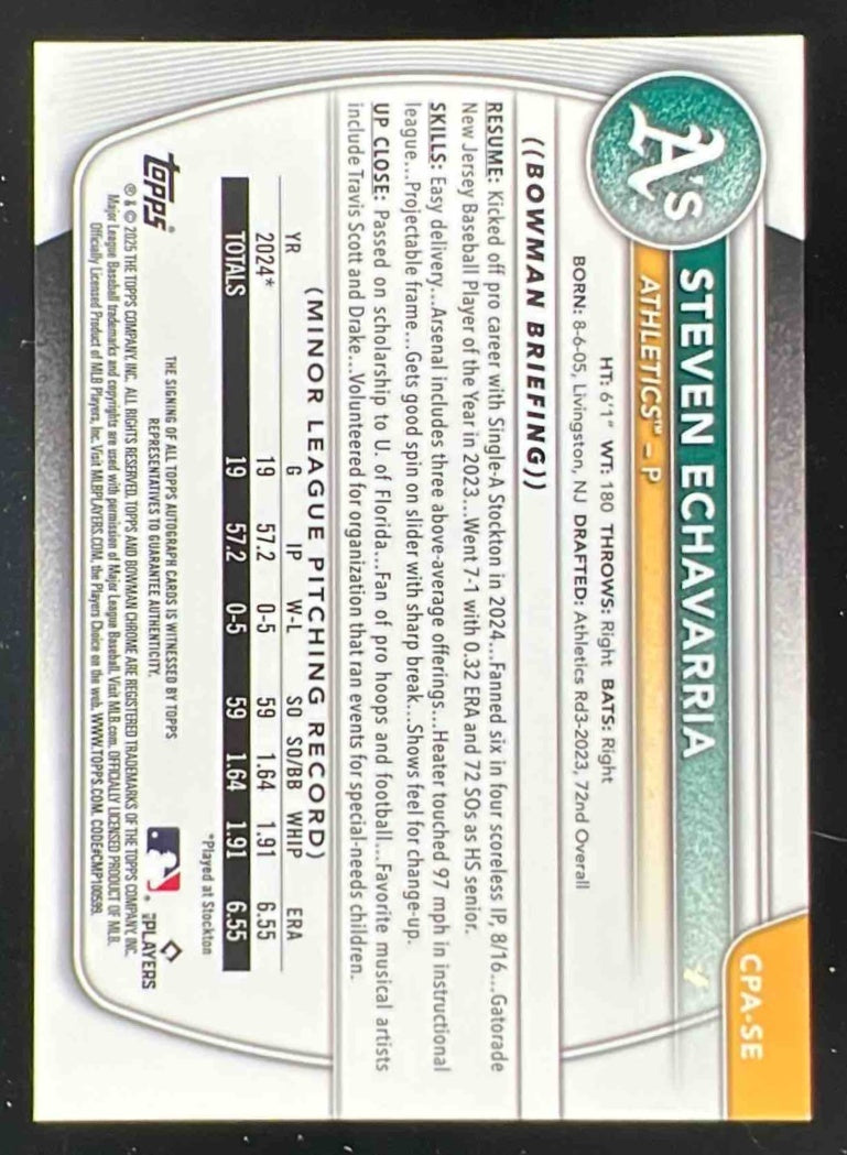 2025 Bowman Chrome Green Grass Refractor #CPA-SE Steven Echavarria RC Auto /99