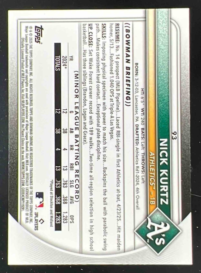 2025 Bowman Chrome Red RC Variation #93 Nick Kurtz RC