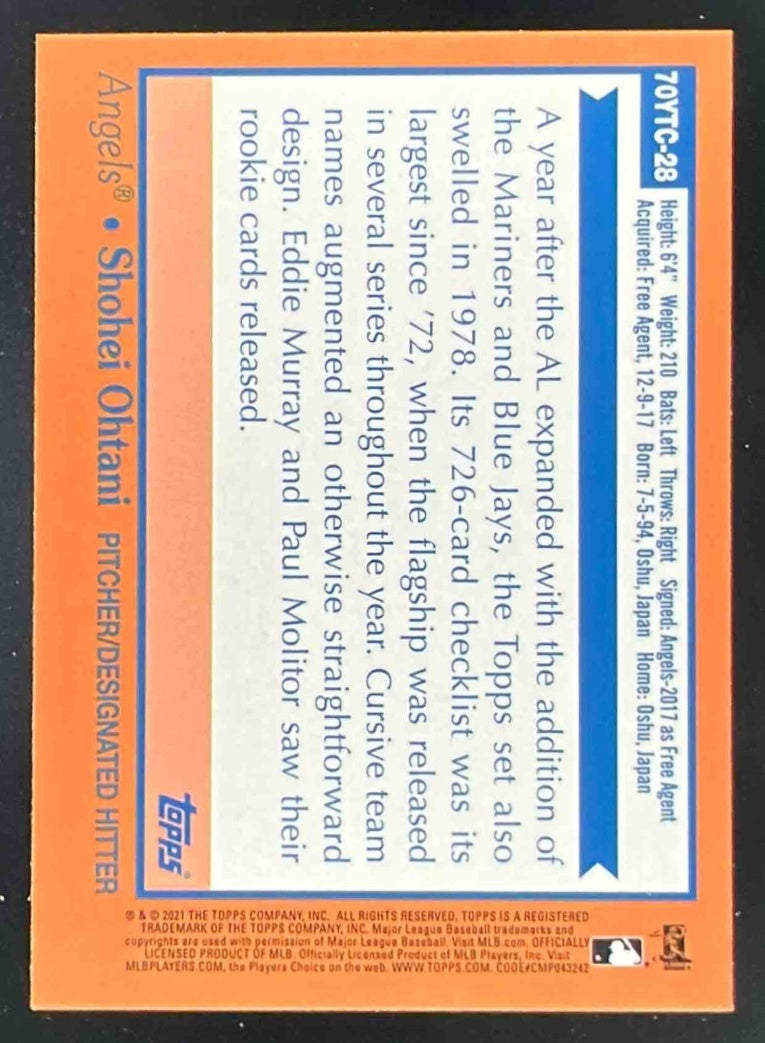 2021 Topps 70 Years of Topps Baseball Chrome Series 1 #70YTC-28 Shohei Ohtani
