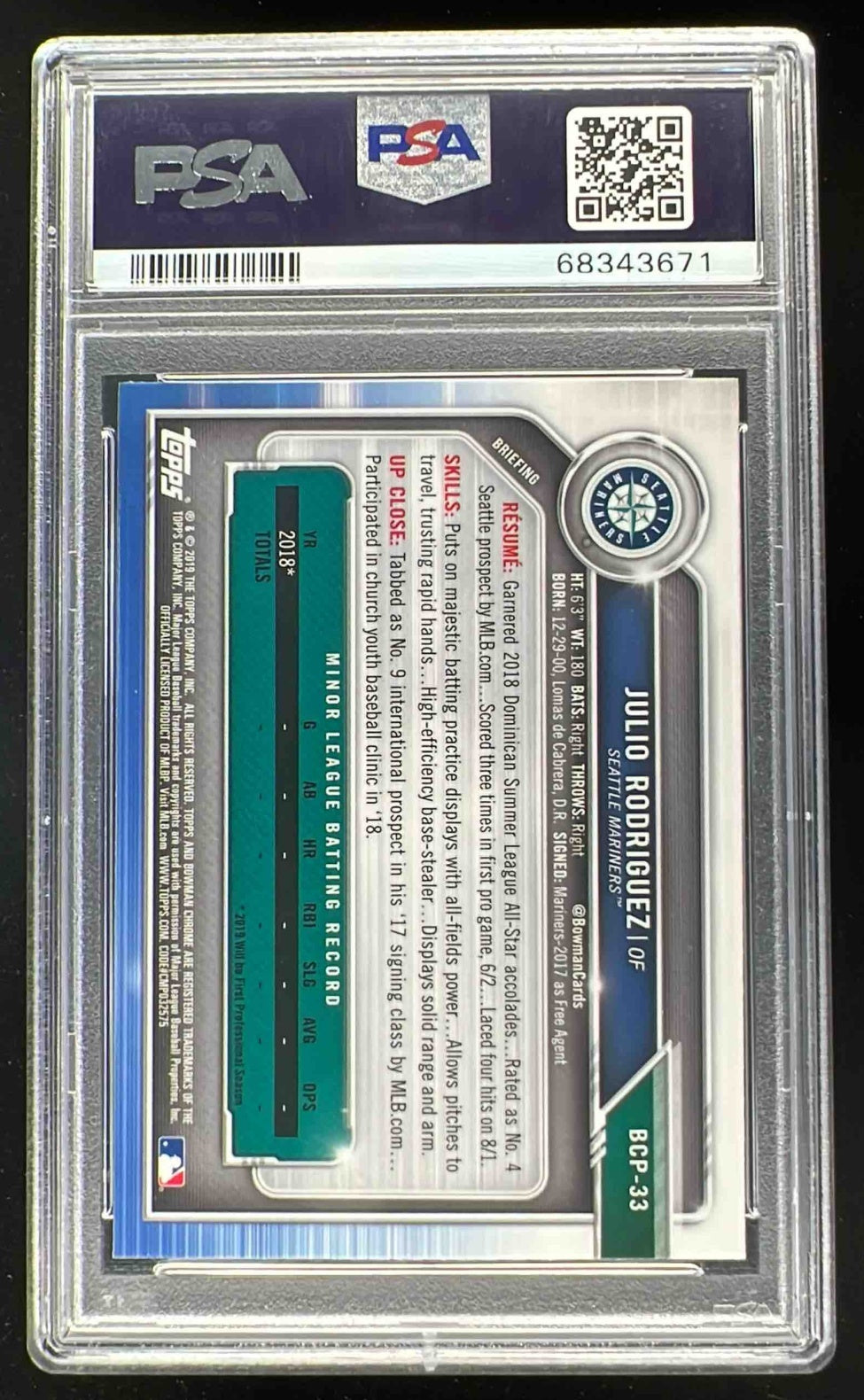 2019 Bowman Chrome Prospects #BCP-33 Julio Rodriguez RC PSA 10