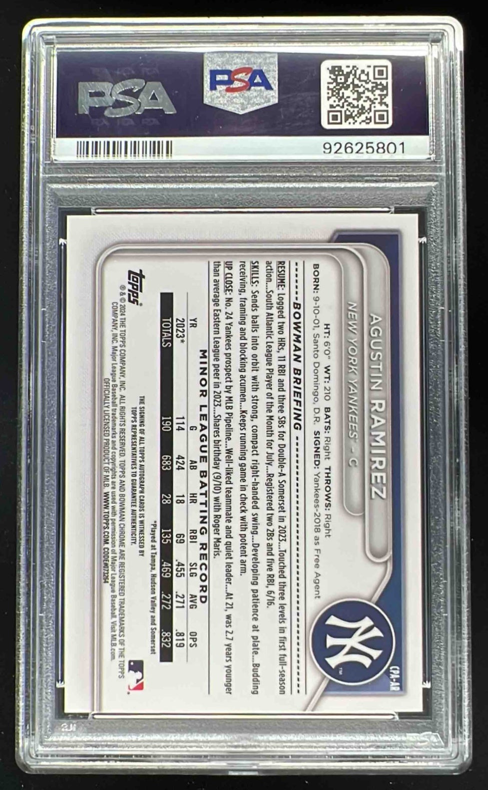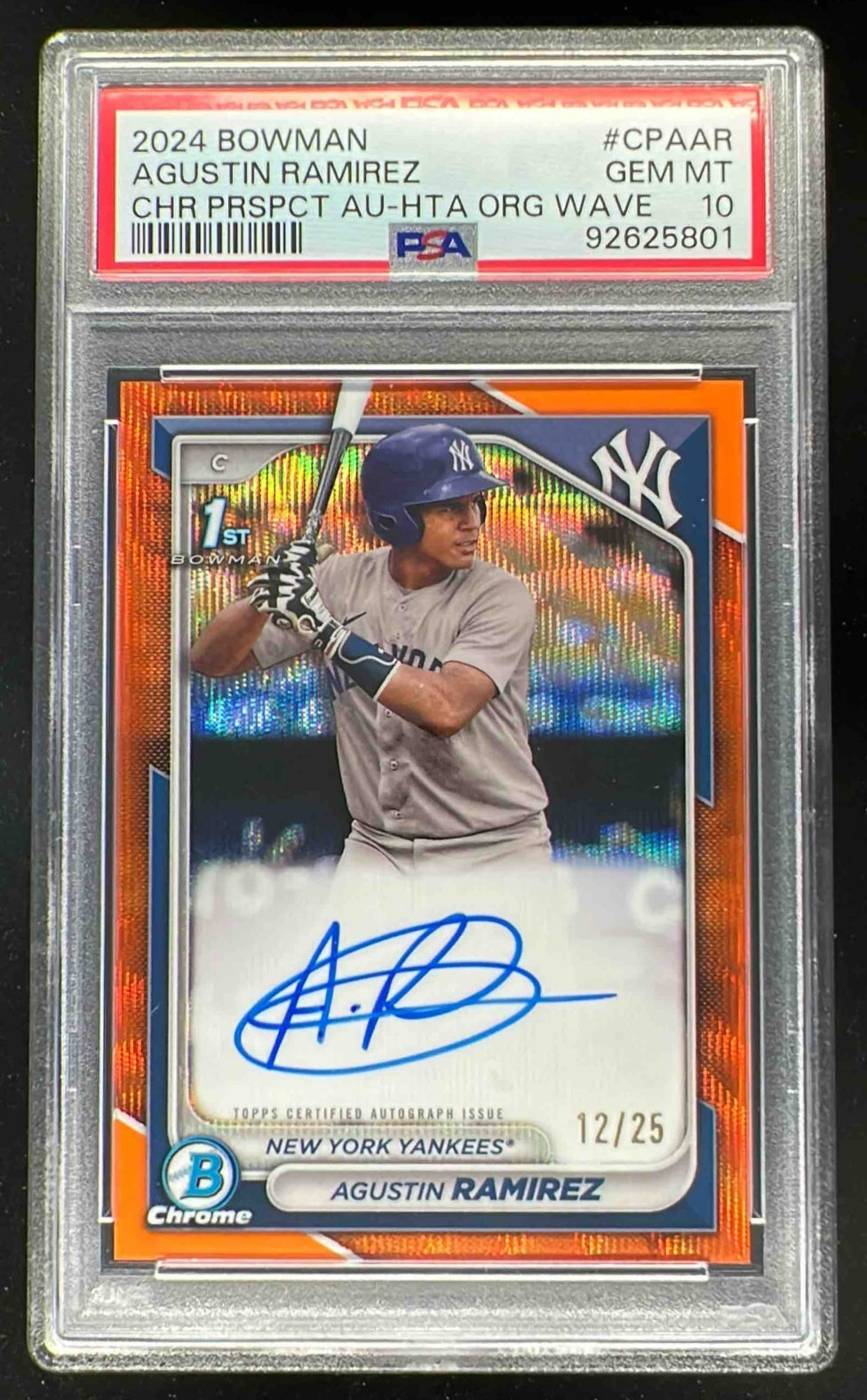 2024 Bowman Chrome Autographs Orange Wave #AR Agustin Ramirez RC Auto /25 PSA 10