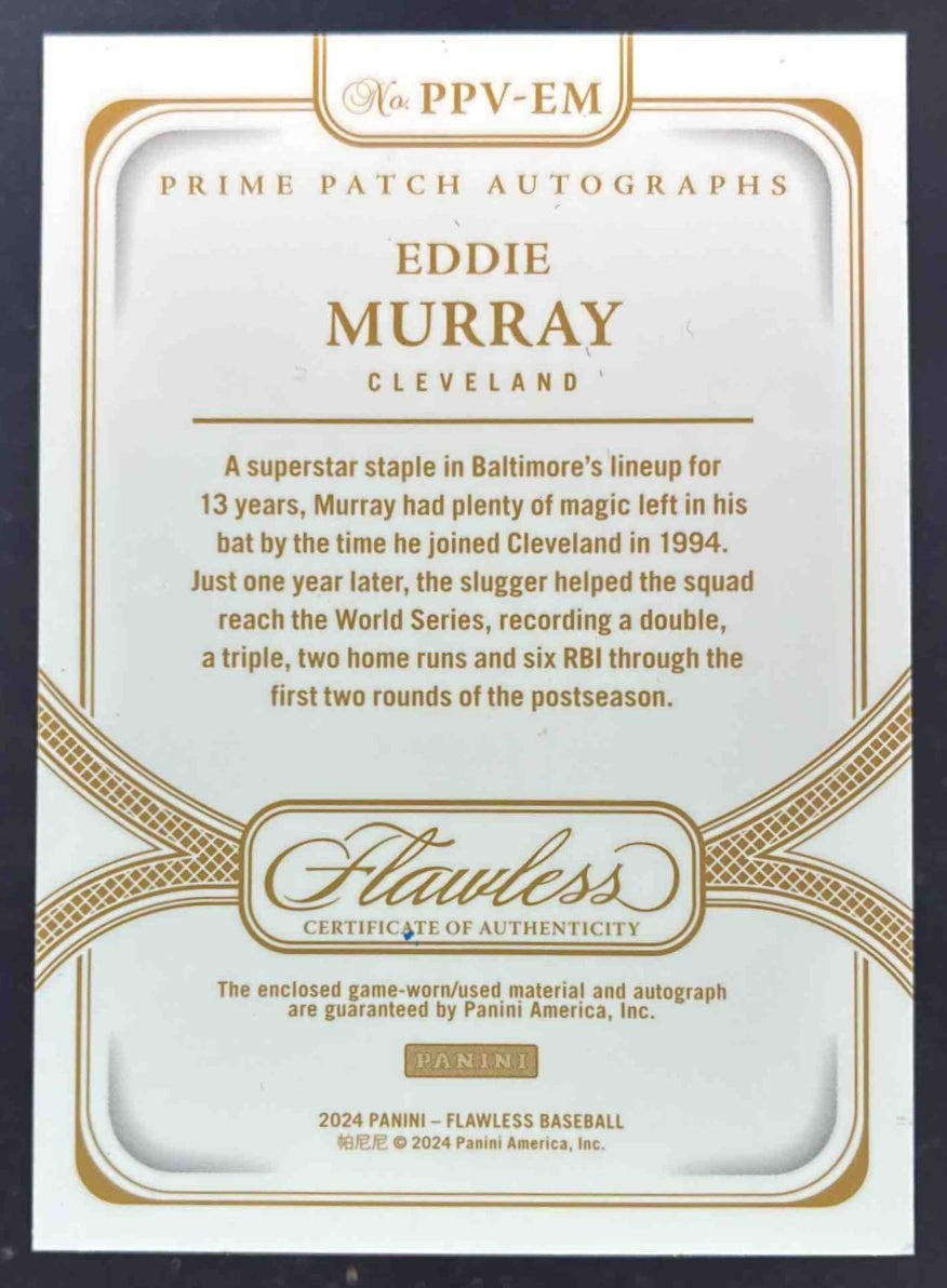 2024 Flawless Prime Patch Autograph Vertical #PPV-EM Eddie Murray Auto /20