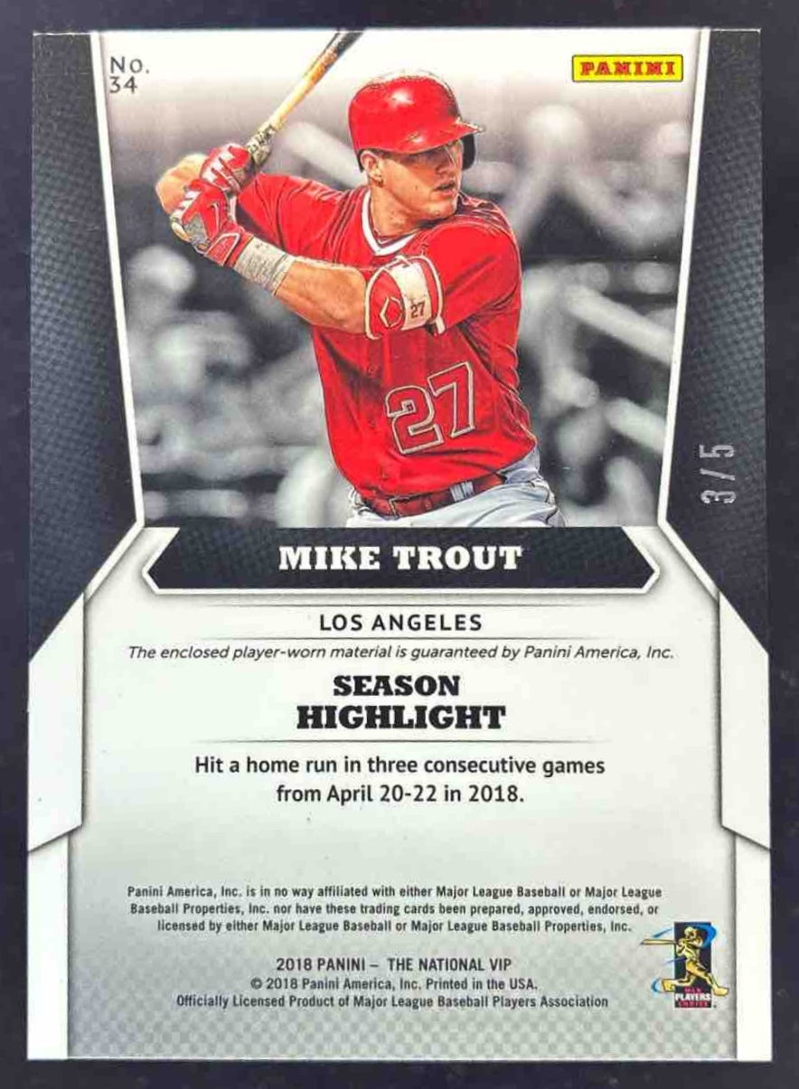 2018 Panini National Convention VIP Relic Green #34 Mike Trout /5