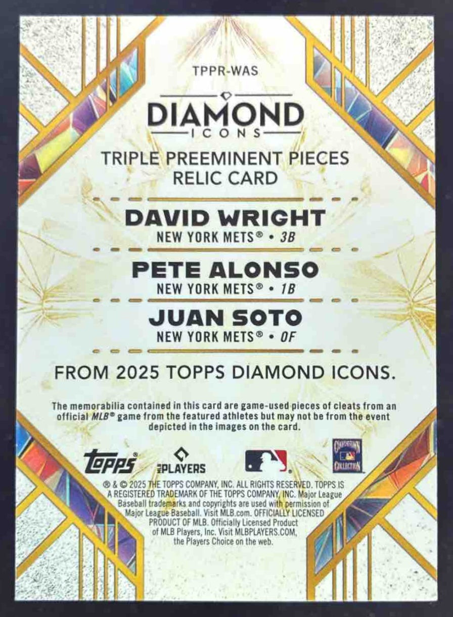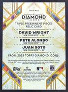 2025 Topps Diamond Icons Piece Relic Gold Juan Soto Pete Alonso David Wright /10