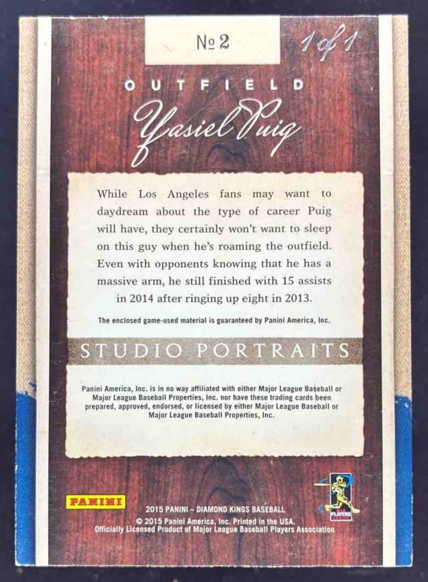 2015 Diamond Kings Studio Portraits Materials Framed Black #2 Yasiel Puig 1/1