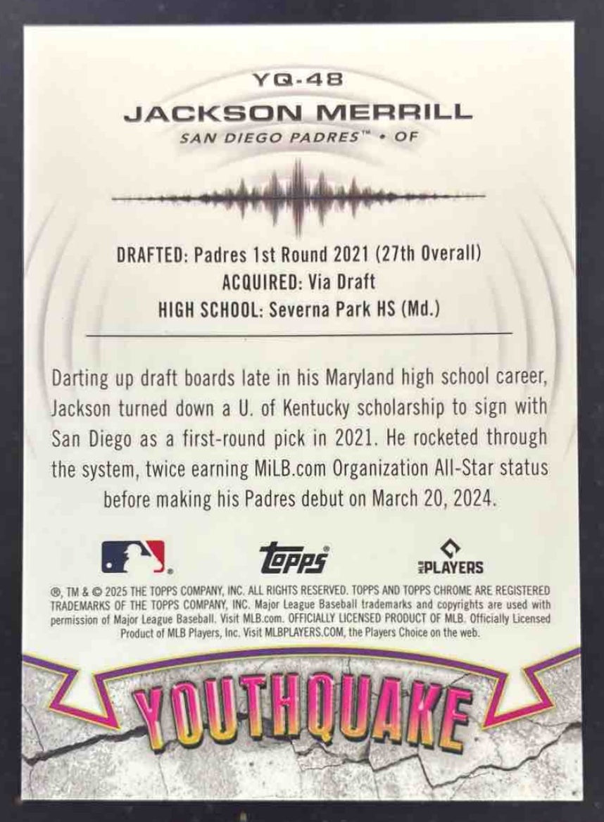 2025 Topps Chrome YouthQuake Black Refractor #YQ-48 Jackson Merrill /10