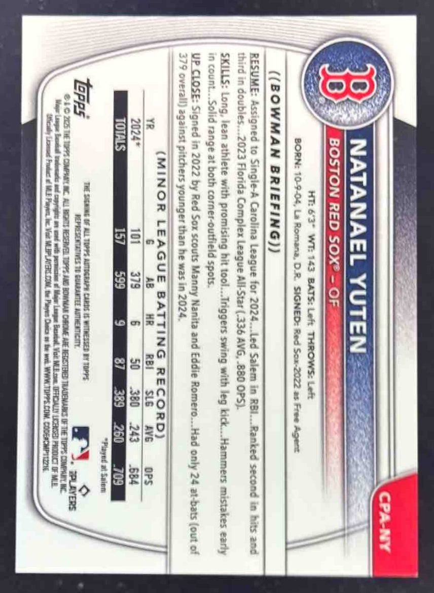 2025 Bowman Chrome Orange Wave Refractor #CPA-NY Natanael Yuten RC Auto /25