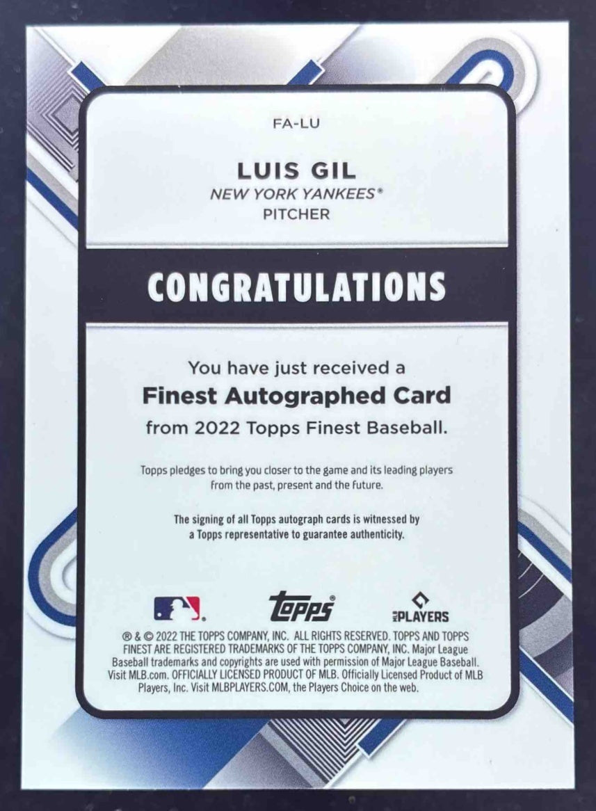 2022 Topps Finest Autographs Red Wave Refractor #FA-LU Luis Gil RC Auto /5
