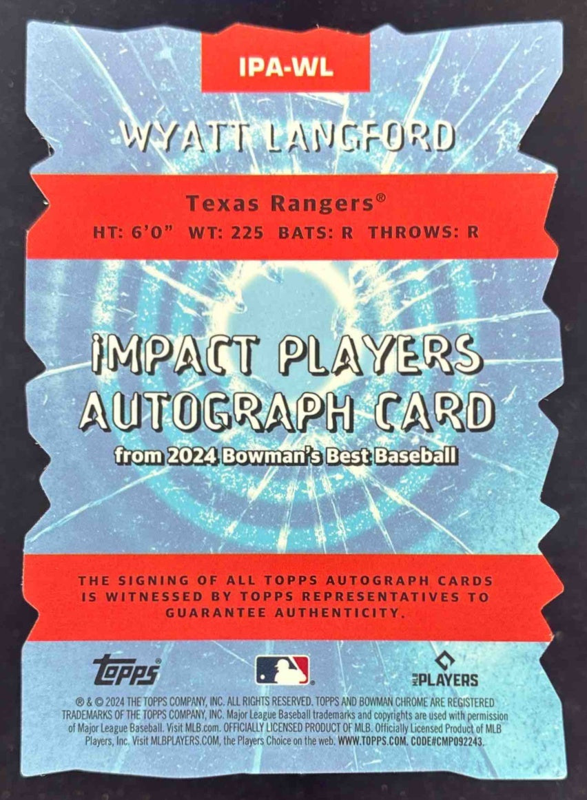 2024 Bowman's Best Impact Players Mini-Diamond #IPAWL Wyatt Langford RC Auto /25