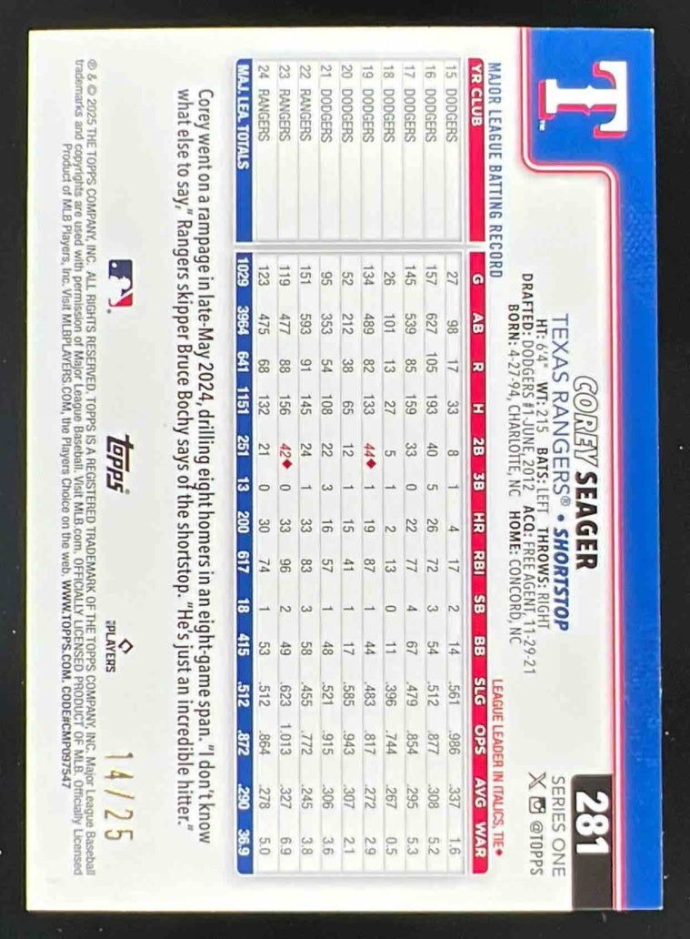 2025 Topps Memorial Day Camo #281 Corey Seager /25