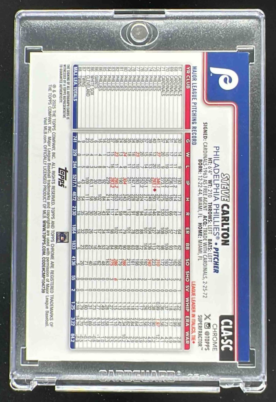 2025 Topps Chrome Legends Autographs SuperFractor #CLA-SC Steve Carlton Auto 1/1