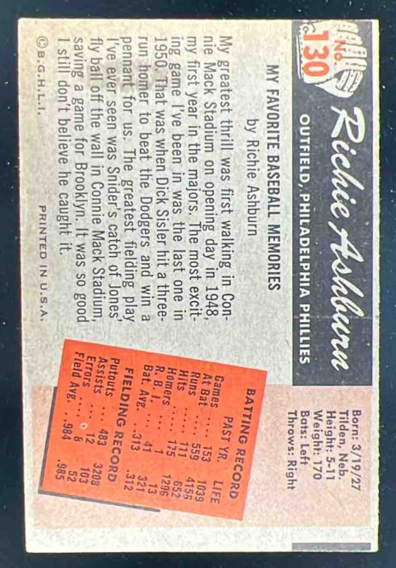 1955 Bowman #130 Richie Ashburn