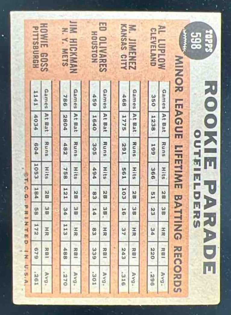 1962 Topps #598 Al Luplow Manny Jimenez Ed Olivares Jim Hickman Howie Goss RC