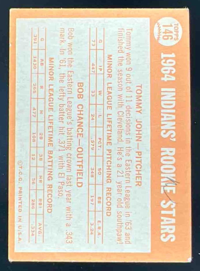 1964 Topps #146 Indians 1964 Rookie Stars Tommy John Bob Chance