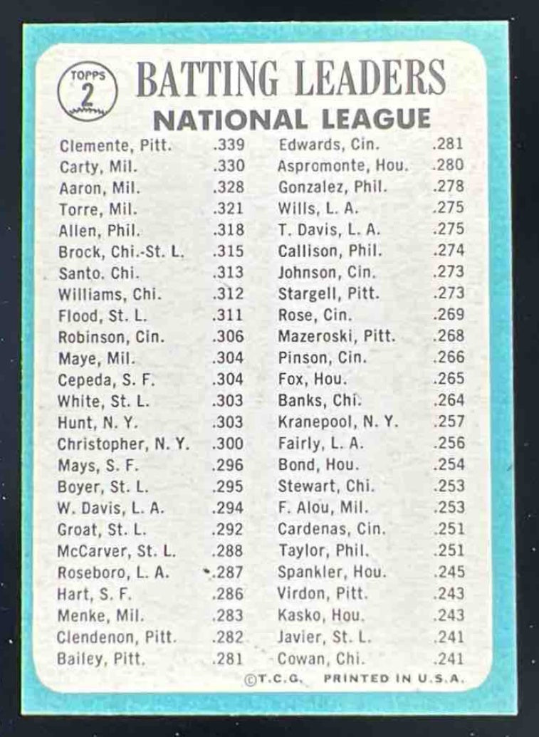 1965 Topps #2 National League Bob Clemente Rico Carty Hank Aaron