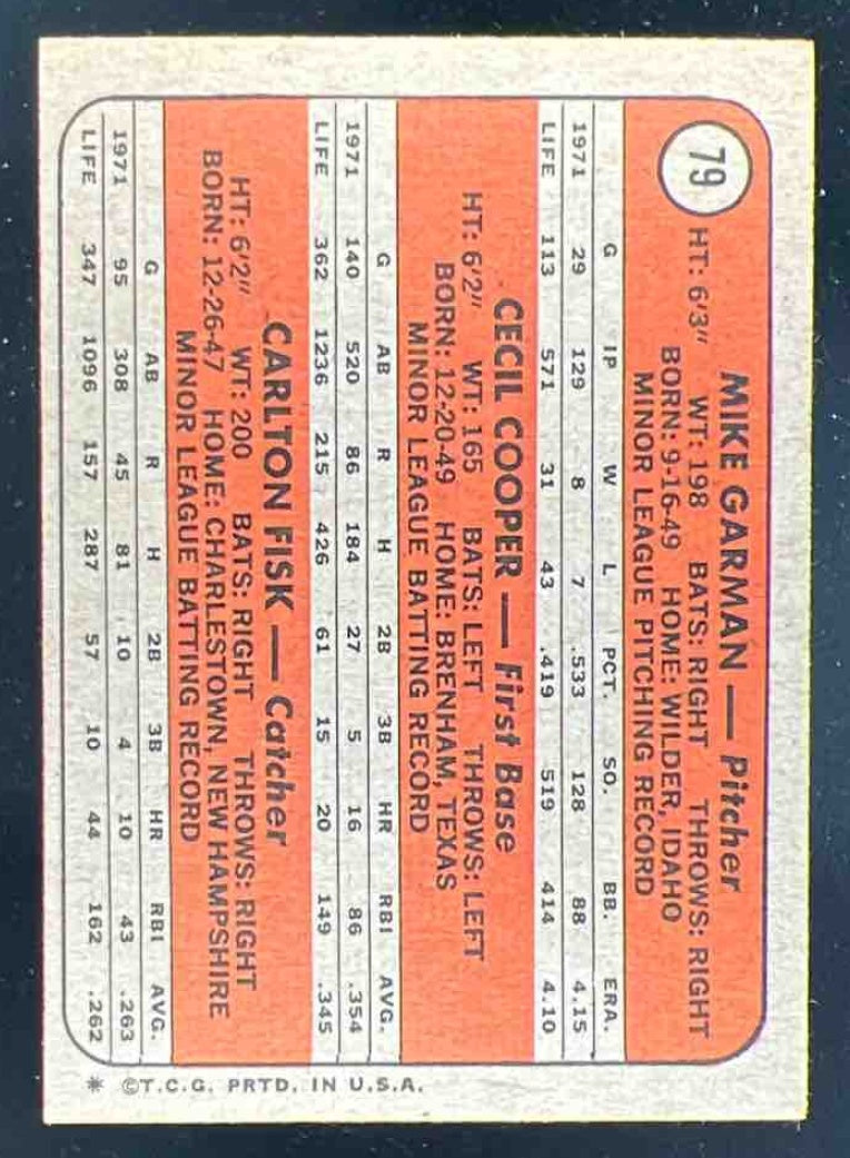 1972 Topps #79 Mike Garman Cecil Cooper Carlton Fisk RC