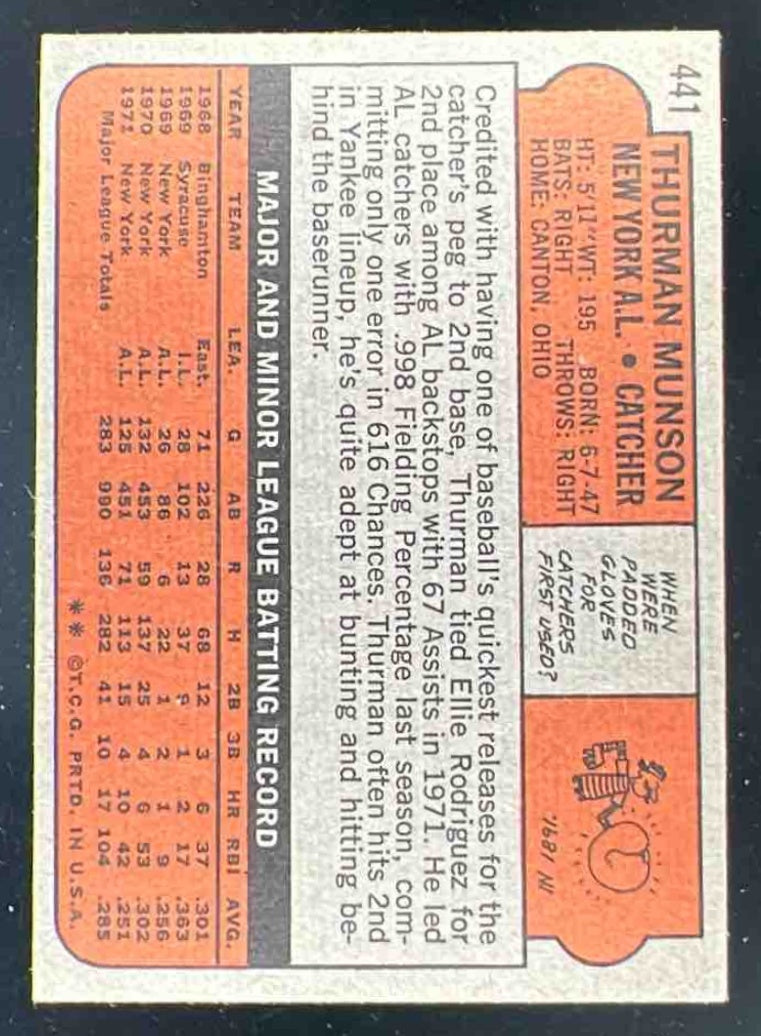 1972 Topps #441 Thurman Munson