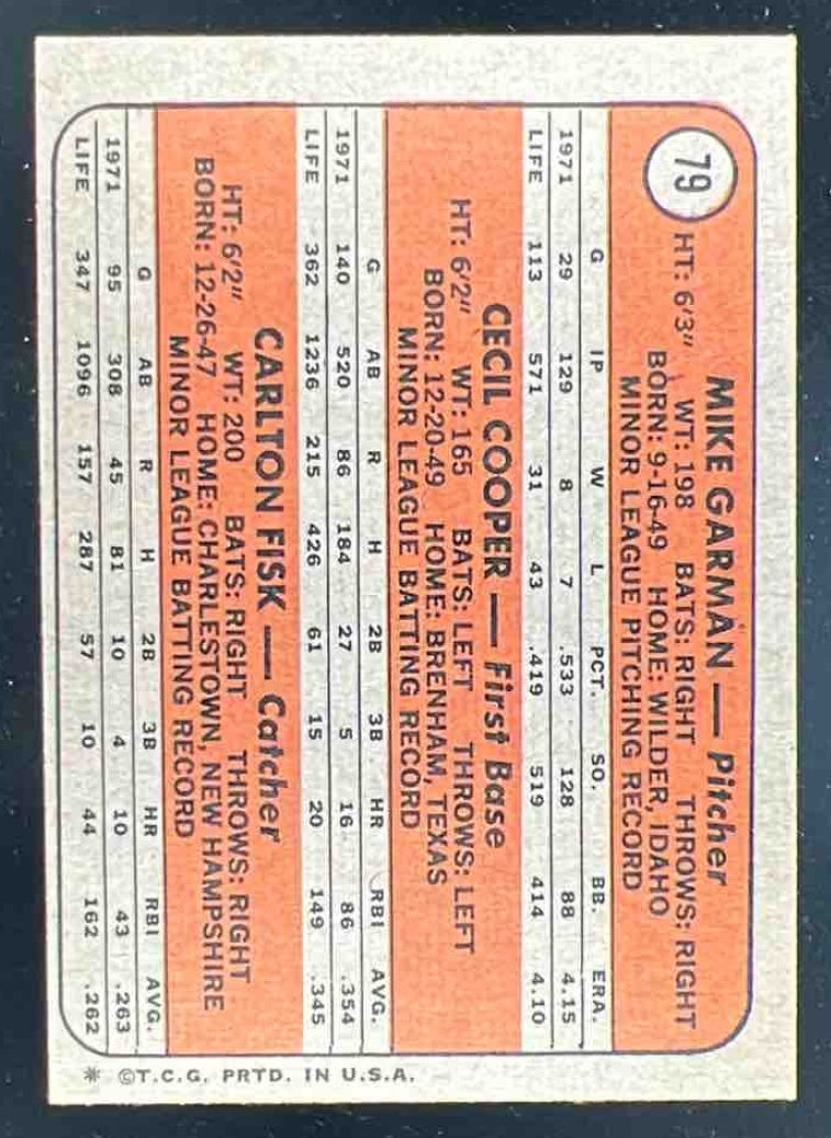 1972 Topps #79 Mike Garman Cecil Cooper Carlton Fisk RC
