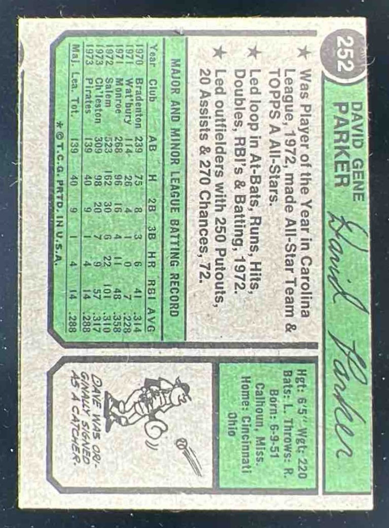 1974 Topps #252 Dave Parker RC