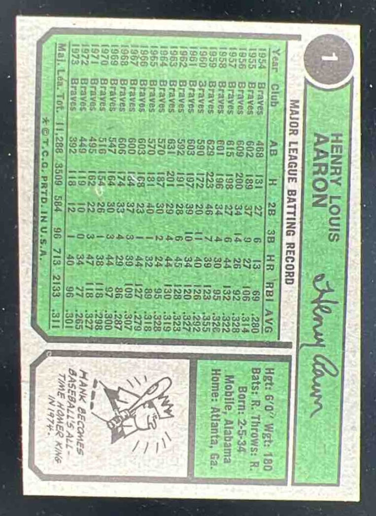 1974 Topps #1 Hank Aaron: New All-Time Home Run King