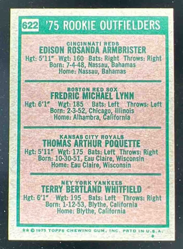 1975 Topps #622 Ed Armbrister Fred Lynn Tom Poquette Terry Whitfield RC