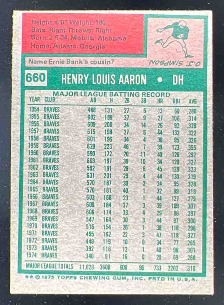 1975 Topps #660 Hank Aaron