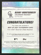 2021 Bowman's Best of 2021 Autographs Red #B21-BM Benny Montgomery RC Auto /10