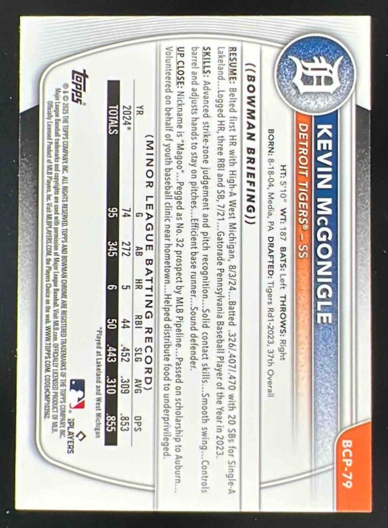 2025 Bowman Chrome Prospects Mega Box Refractors #BCP-79 Kevin McGonigle RC