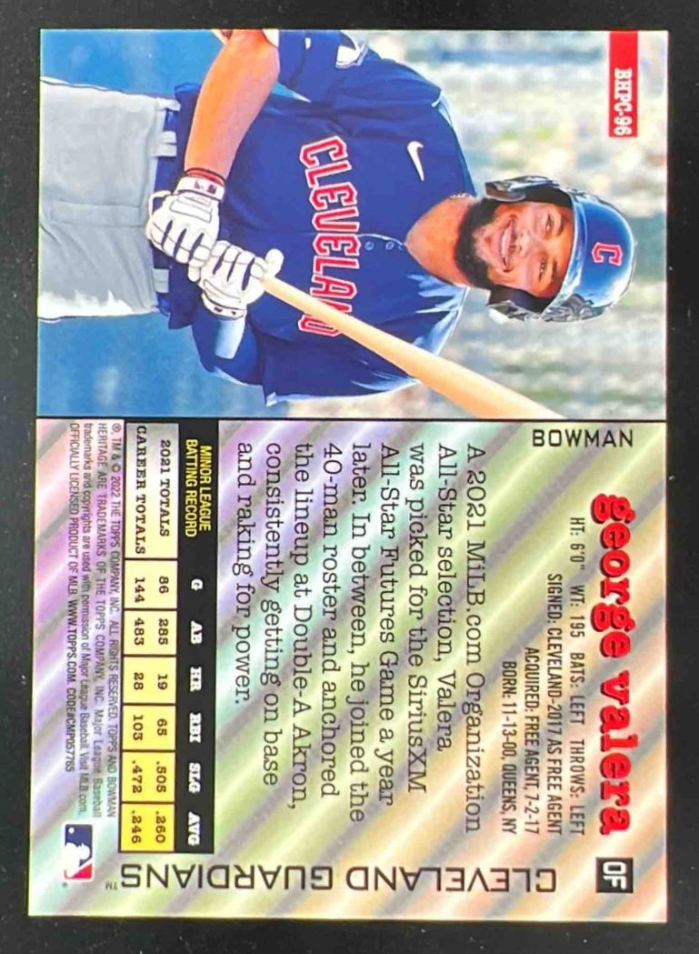 2022 Bowman Heritage Chrome Prospects Red Refractor #BHPC-96 George Valera /5