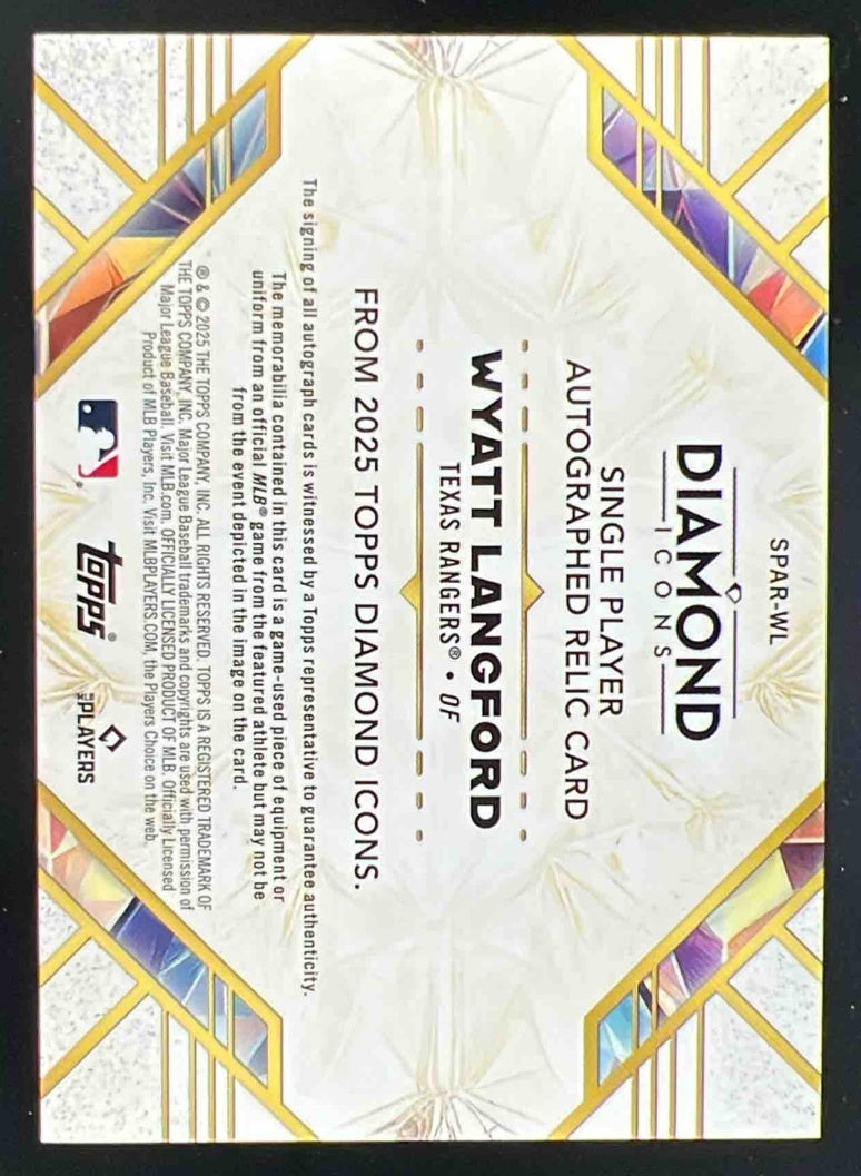 2025 Topps Diamond Icons Single Player Relic Red #SPAR-WL Wyatt Langford Auto /5