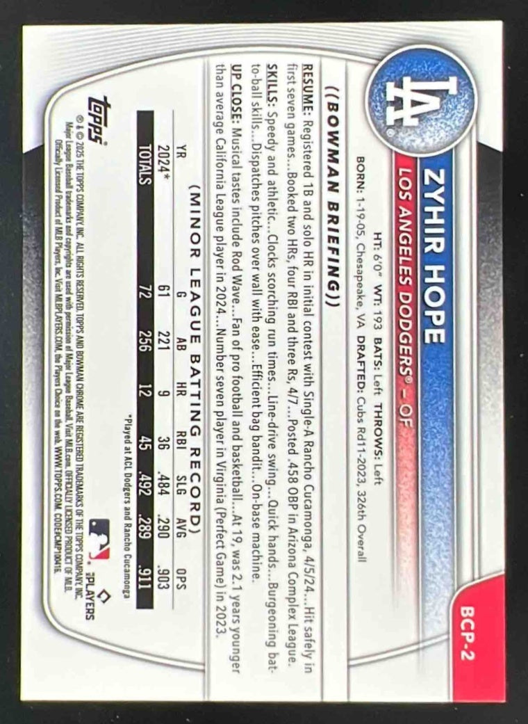 2025 Bowman Chrome Prospects Gold Shimmer Refractor #BCP-2 Zyhir Hope /50