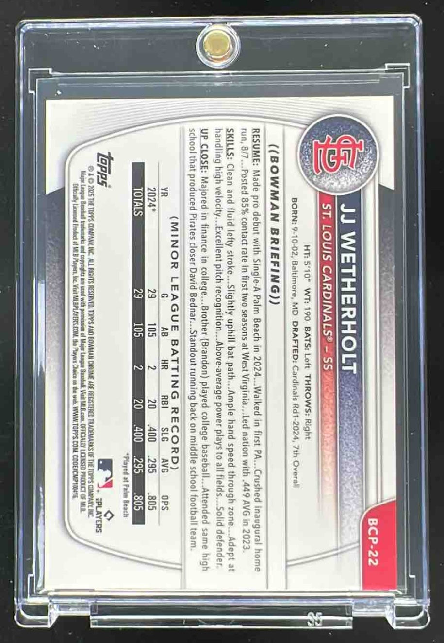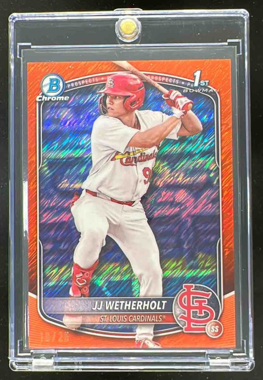2025 Bowman Chrome Prospects Orange Shimmer Refractor #22 JJ Wetherholt RC /25