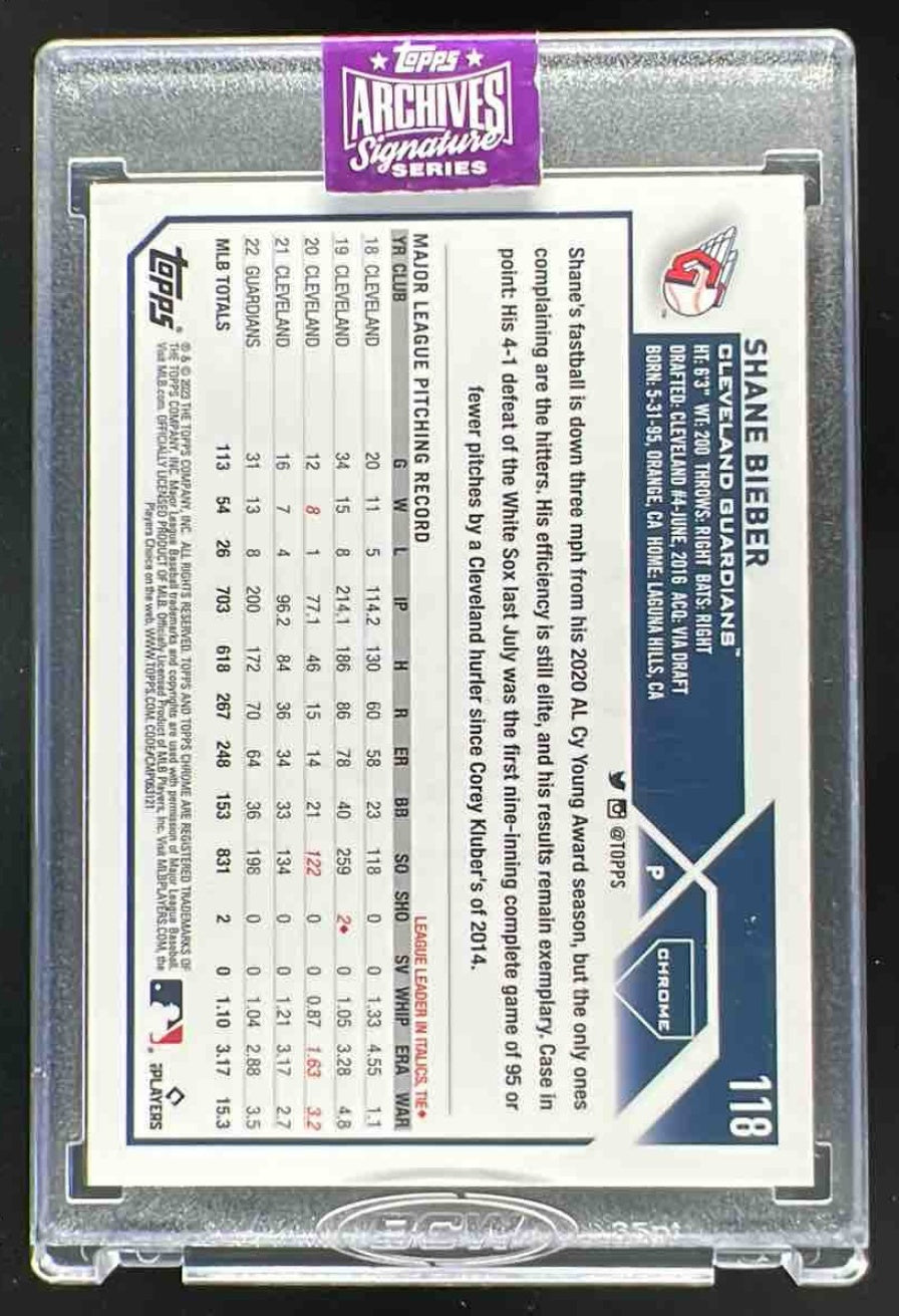 2025 Topps Archives Signature Series Autograph Shane Bieber Auto /15