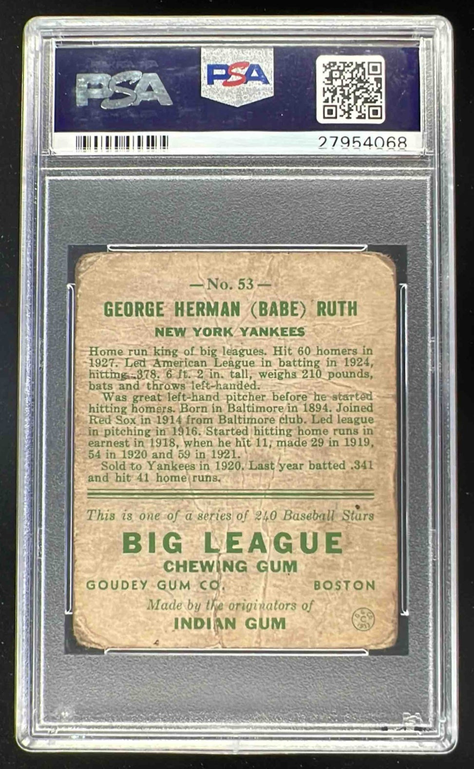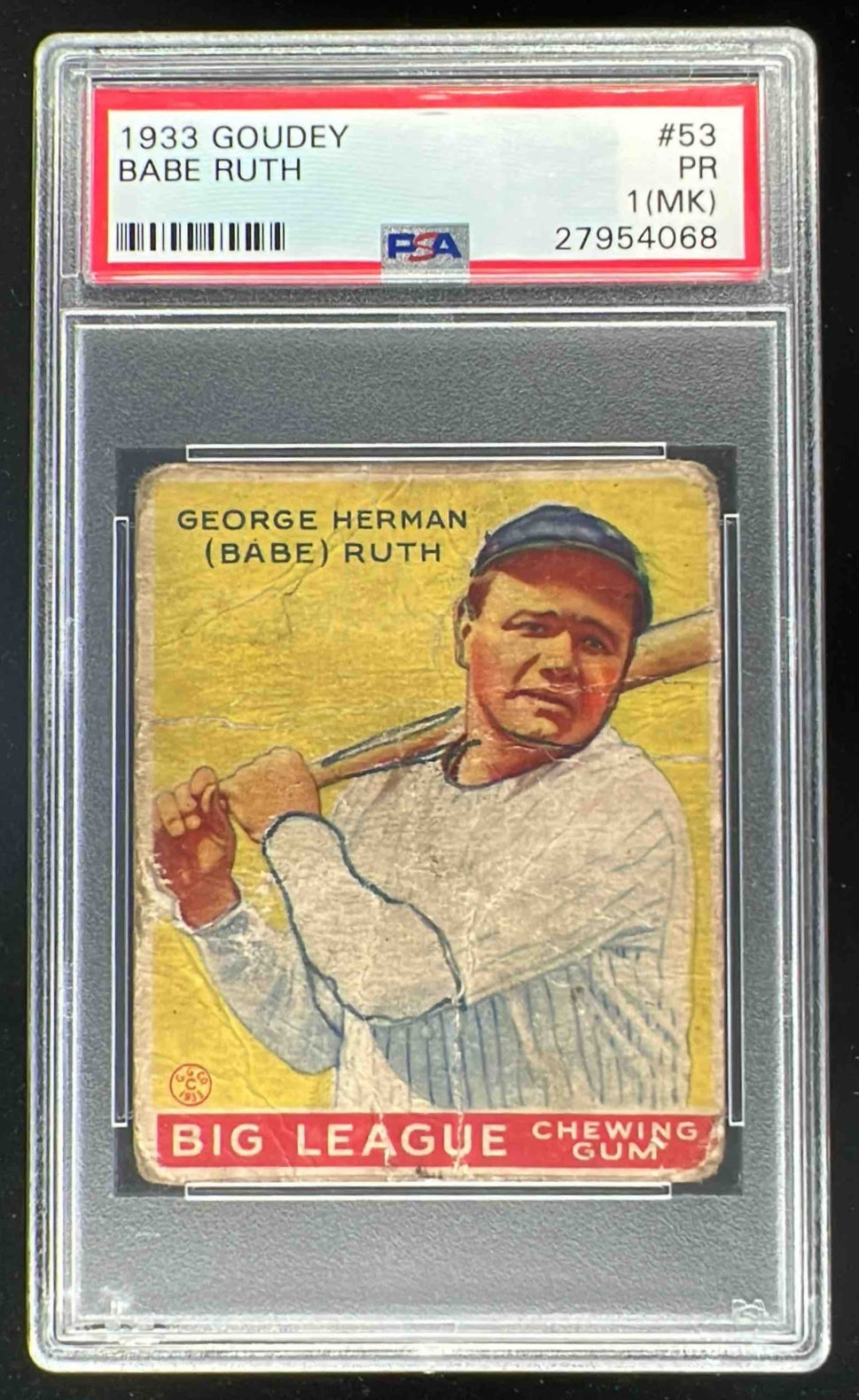 1933 Goudey #53 George Herman Babe Ruth RC PSA 1 (MK)