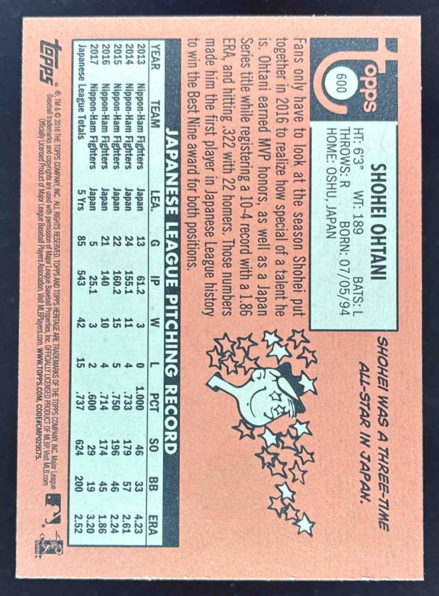 2018 Topps Heritage #600 Shohei Ohtani RC