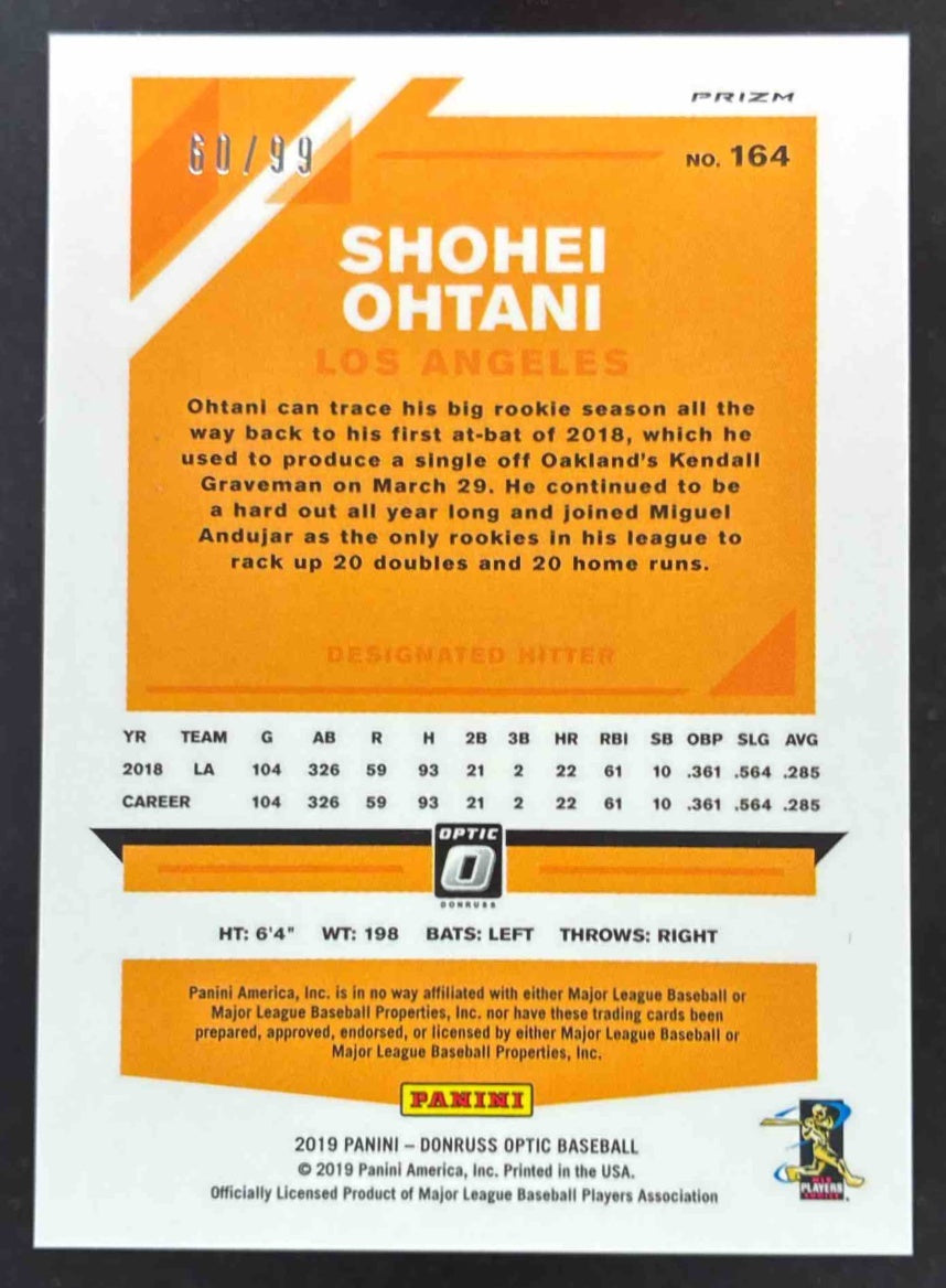 2019 Panini Donruss Optic Orange Prizm #164 Shohei Ohtani /99