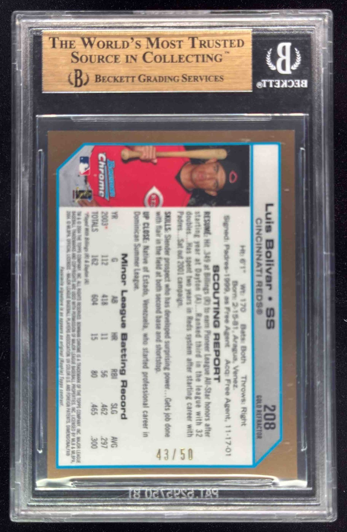 2004 Bowman Chrome Gold Refractors #208 Luis Bolivar RC /50 BGS 10
