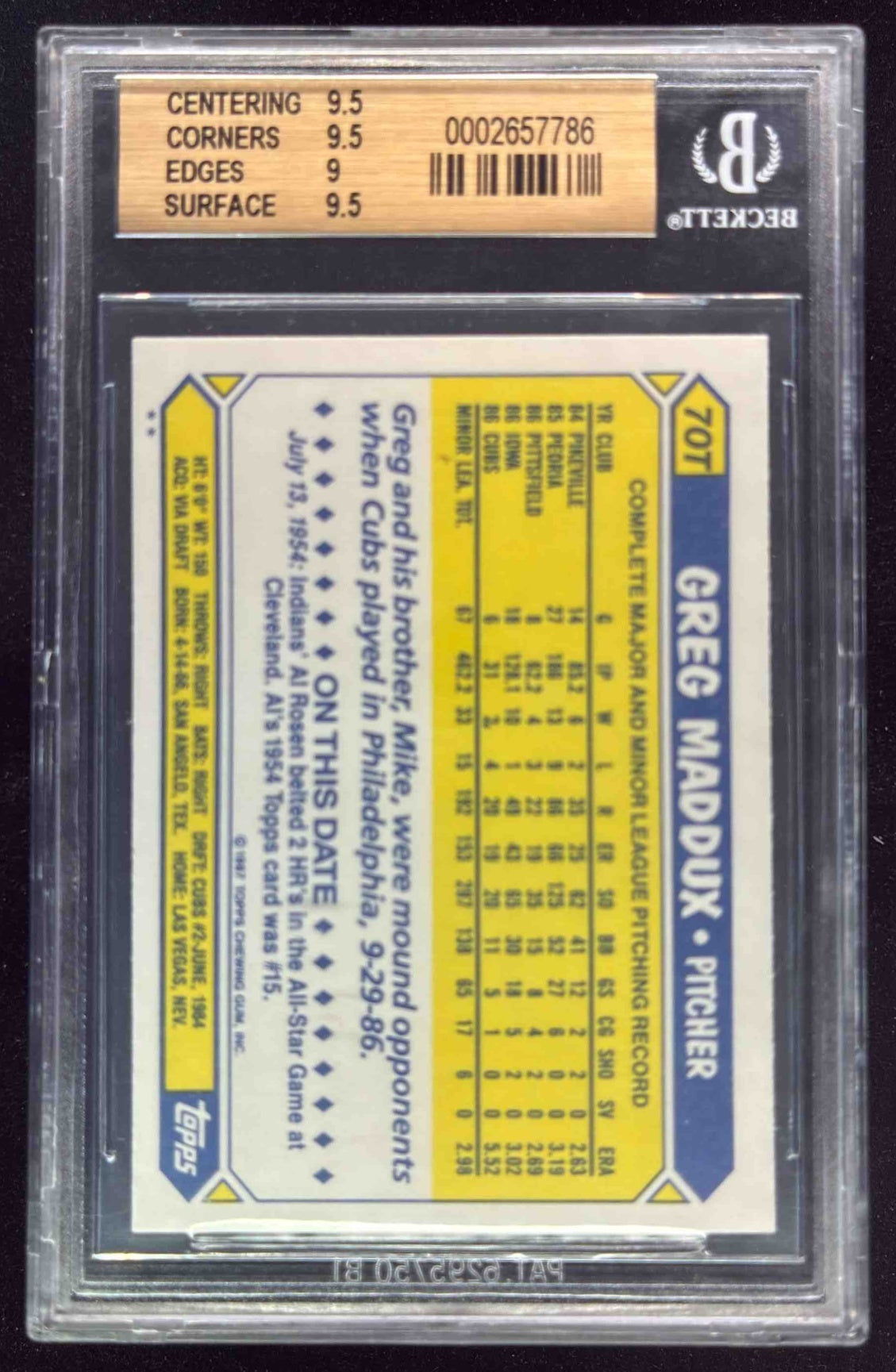 1987 Topps Traded #70T Greg Maddux RC BGS 9.5